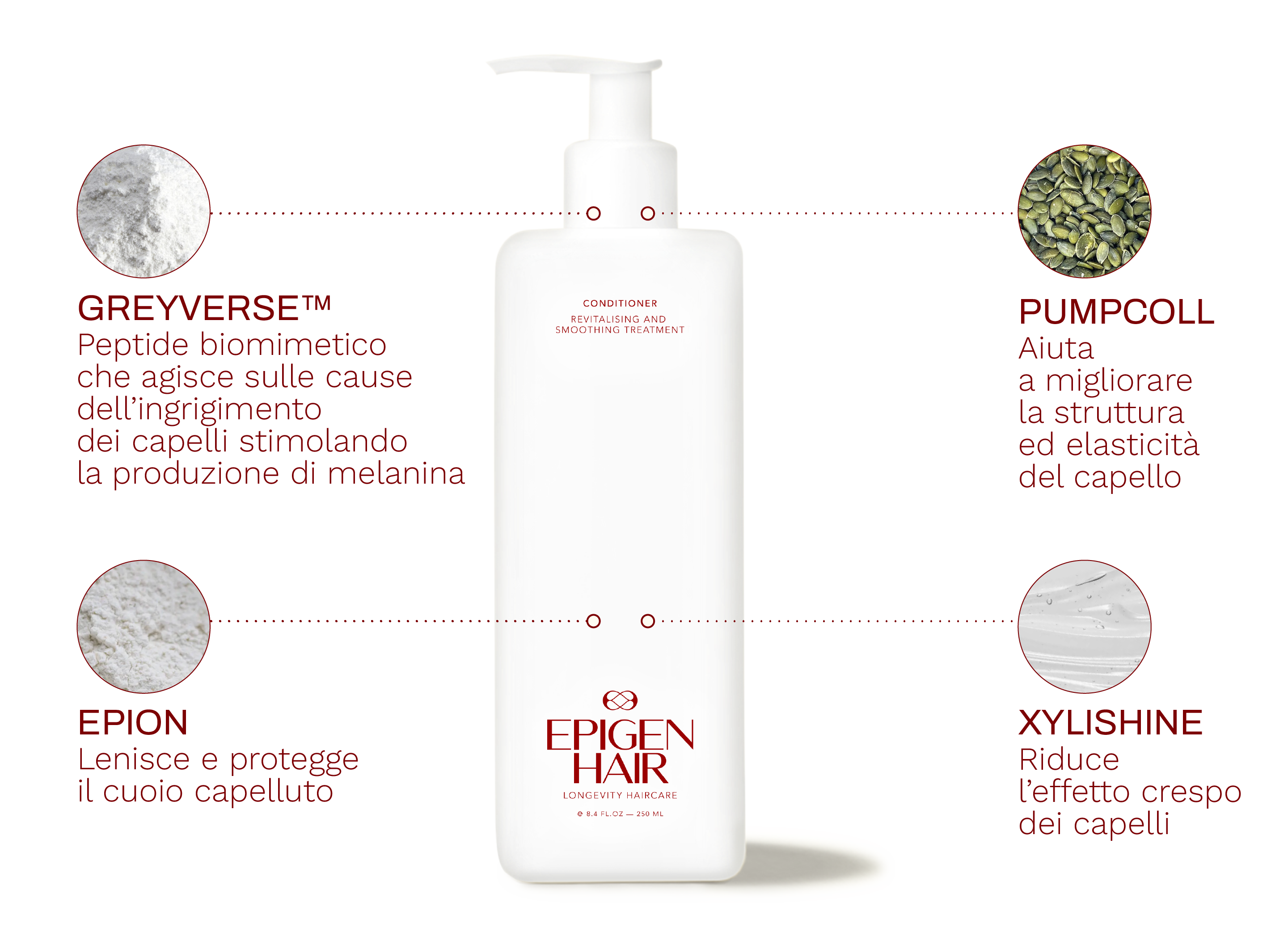 Greyverse™ contiene un peptide biomimetico in grado di agire sulle diverse cause del processo di ingrigimento. Offre una soluzione per prevenire, rallentare e invertire questo inevitabile segno del tempo, aiutando a mantenere il colore naturale dei capelli.